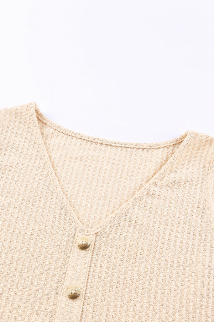 Decorative Button V-Neck Waffle-Knit Babydoll Tank