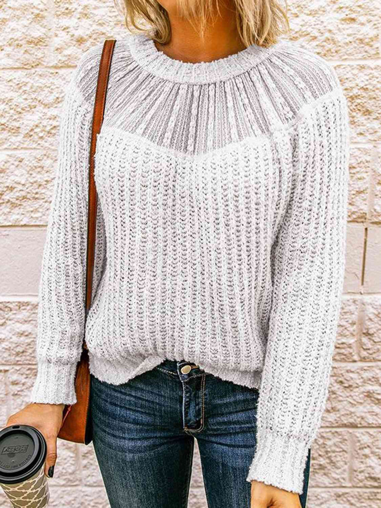 Round Neck Rib-Knit Sweater