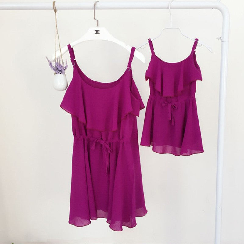 Casual Bohemia Ruffles Chiffon Mother Daughter Beach Dress